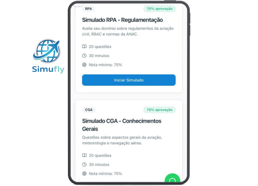 Você está a um passo de marcar sua prova com a certeza da aprovação com o Simufly em apenas 30 minutos de treino por dia.